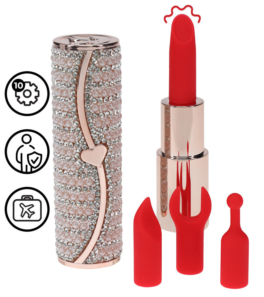 Hipoallergén anyagból készített, selymesen fénylő, különleges rúzs formával, 10 rezgési funkcióval rendelkező, könnyen kezelhető, kezdőknek is ajánlott, vízálló minivibrátor. A dobozban található cserélhető + 3 fejegység.